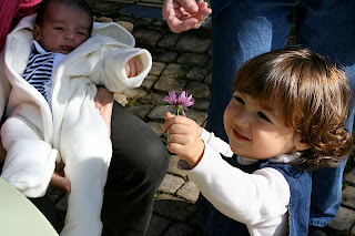 This has been a nice fall season. It started with Gabriel's first visit to the country pad; Mimi was still here and she played with me on the slide. Later, daddy took me out to pick apples and Clarita took them to make us a nice compote which mommy and daddy ate with Boudin Noir (yes, people eat that here).