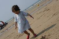 Cabourg, the town where Proust once hung out. I wasn't much in the mood for writing. Who has time for writing when you have a whole ocean to pour into a hole in the sand one watering can at a time? It's a good thing daddy was carrying the can!
