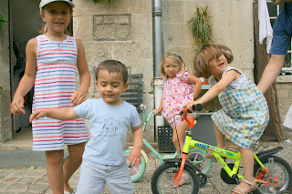 The days were full. There were flat tires, ping pong tournaments, conjunctivitis, World Cup finals, Play Dough moustaches, potato picking, donkey feeding, roosters thieving, picnics, flowers floating down the lavoir, corn reaping, thunder storms, hot sun, fireworks, Champagne, Bambie terrine, five-star breakfast service, abandoned castles, swimming, appéros, bike riding, barbecues, and cousins, cousins, and more cousins. Wow! Tu sais, the people that stormed the Bastille must have been pretty angry. But with all these vacation days away from home I was wondering, who has time for a revolution? I mean, wouldn't it be better to be our working on your tan? Tu sais?