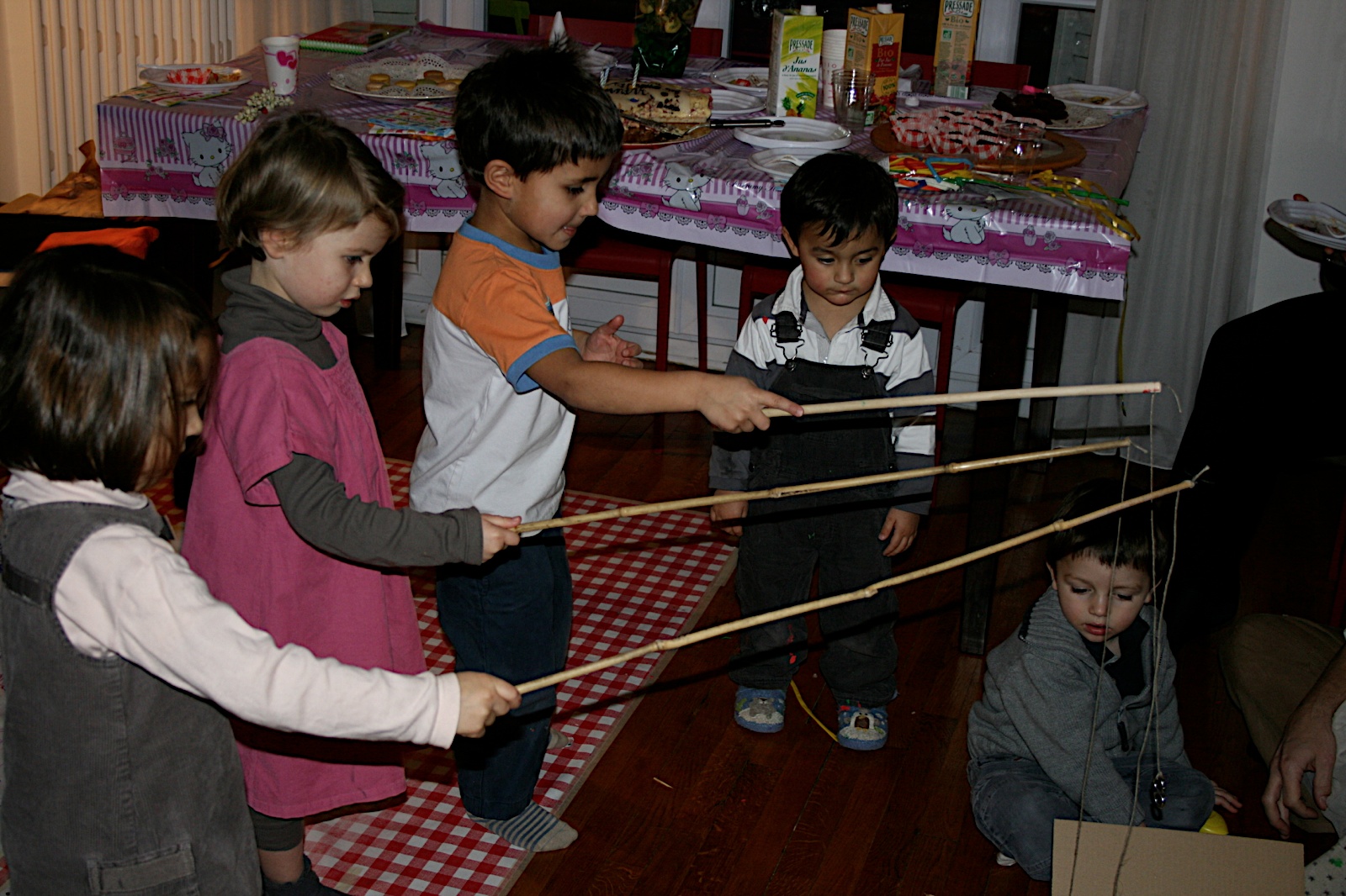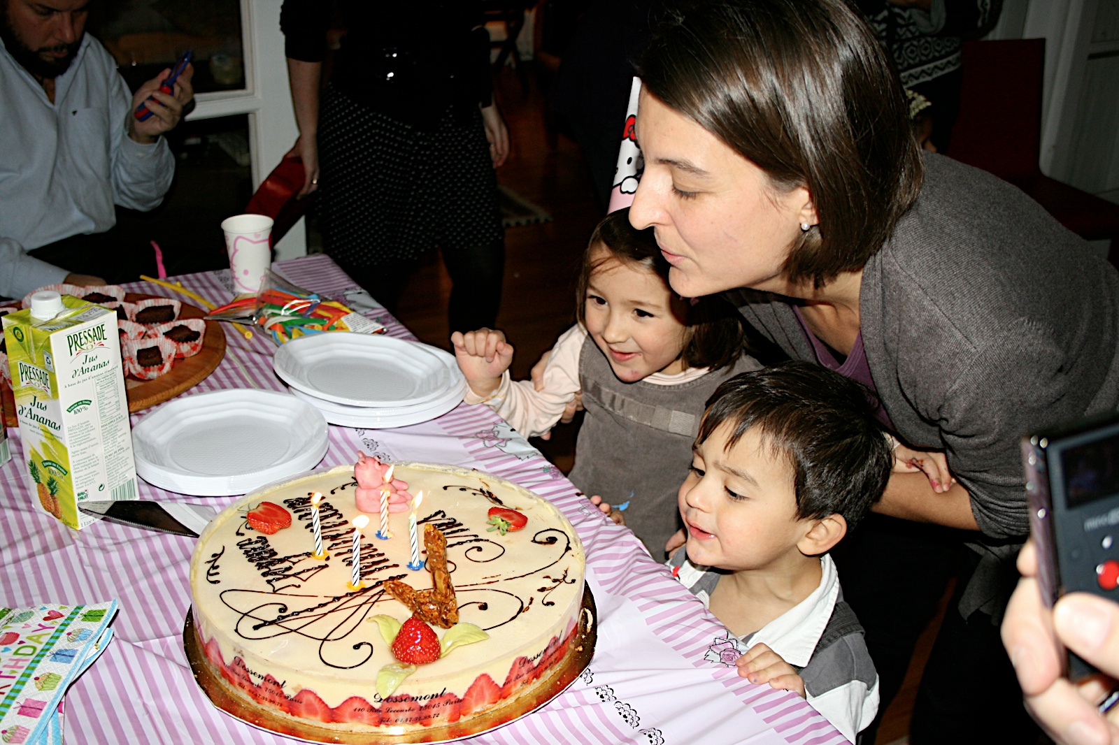 It all started last Sunday. A soirée intime, even though it wasn't during the soirée and it wasn't intime. Some of my closest friends came to break cake. Dude, my Godfather, provided ample entertainment. Mama organized the games: fishing, some funny unwrapping game, " 1,2,3, soleil!", and other crazy things. Nickil and Gayatrie's mom, Solène brought jasmin for our hair and Nico built the train.