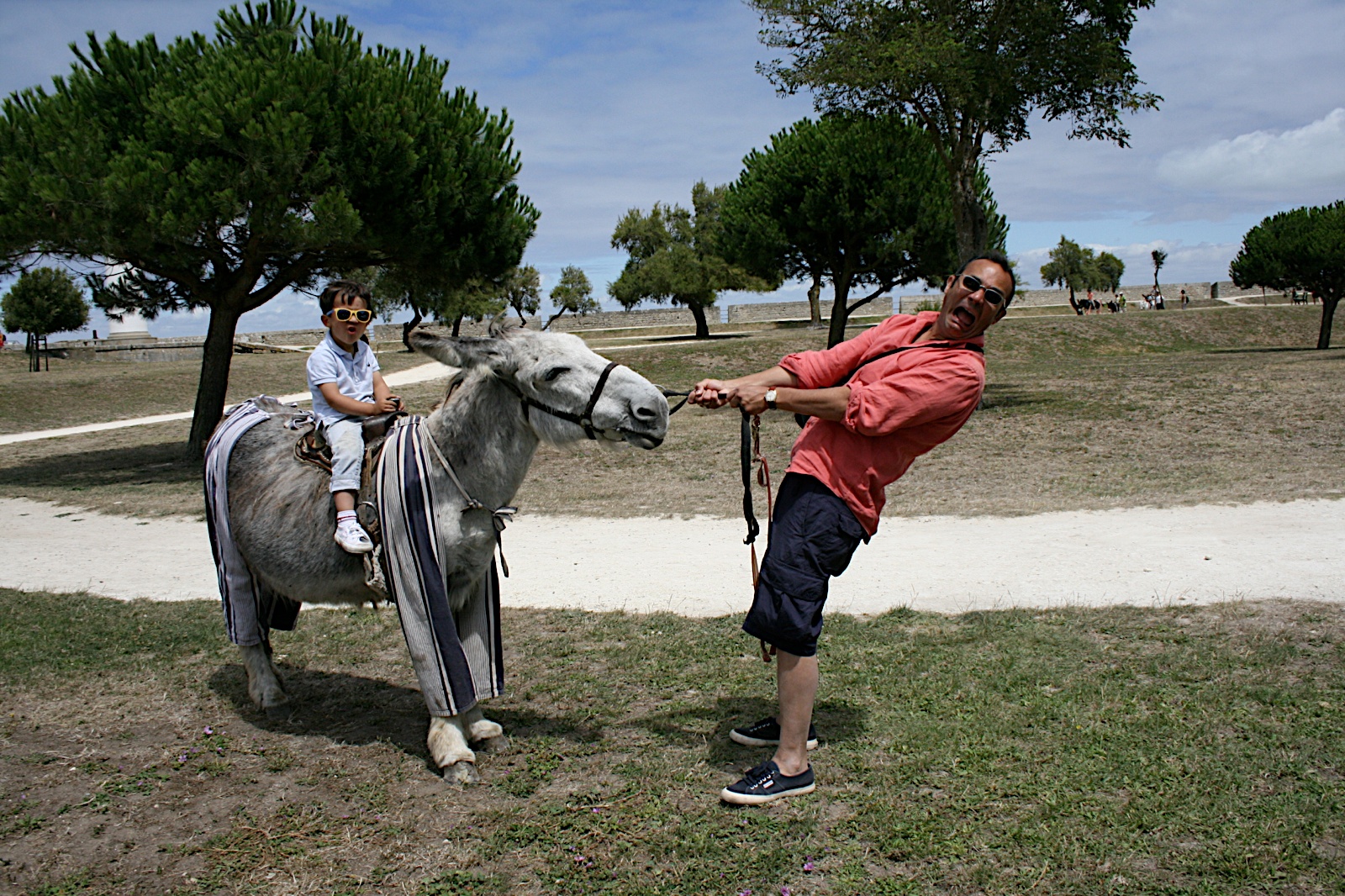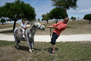 But we're not the shallow types who sit around all day showing off their fancy cars. We're 21st century Parisians, and that means we're in touch with nature, and we are environmentally aware and responsible. Donkeys are one of the more glamorous forms of "green" transport (trendy loser speak) and mama and papa were in no position to say no: "Mama, tell us how you climbed Mt. Etna again..." Before I knew it I was on a first name basis with a donkey named Isolde. Then there was the 173rd ride on the merry-go-round: "Papa, do bald people your age really rent convertibles?"