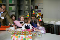 When I got to school Mme Frankart, my teacher, gave me a kiss. Then, in the afternoon, we all had chocolate cake (thanks mama!) and apple juice.
